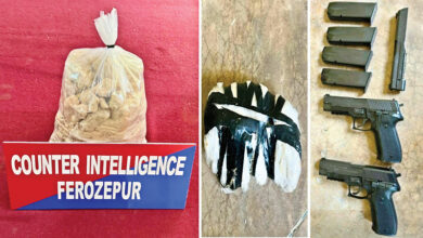 फिरोजपुर में पांच किलो हेरोइन जब्त, आरोपियों से दो पिस्तौल, चार मैगजीन कब्जे में ली, तीन तस्कर गिरफ्तार