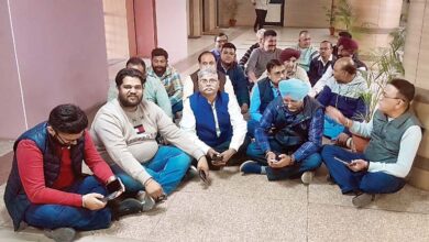 निगम दफ्तर के बाहर धरने पर बैठे ठेकेदार, बिलों का भुगतान न होने पर किया प्रदर्शन