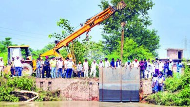 नहर पर बैरिकेड लगा कर रोका पानी, माधोपुर में गेट टूटने से रिहायशी इलाकों में जा घुसा था पानी
