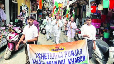 खरड़ में निकाली तिरंगा रैली, क्षेत्रीय पंजाब खादी मंडल ने स्वदेशी वस्तुएं अपनाने पर किया जागरूक