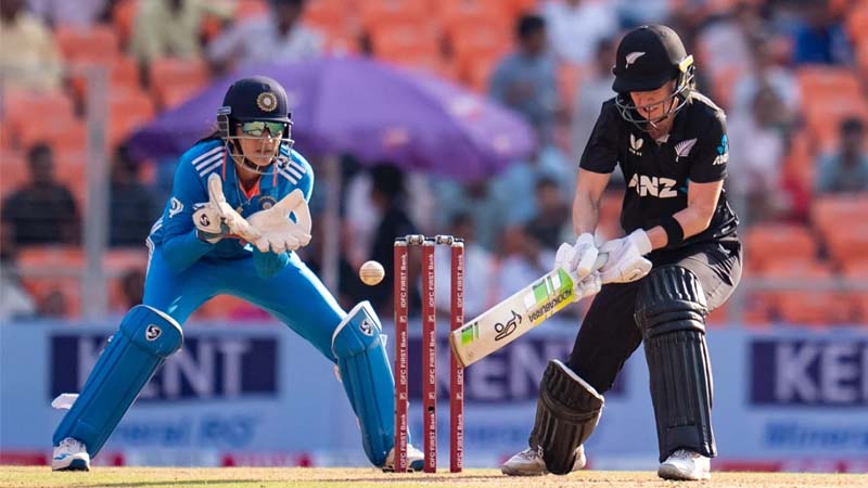 अहमदाबाद। कप्तान सोफी डिवाइन (79) और सलामी बल्लेबाज सूजी बेट्स (58) की शानदार पारियों के दम पर न्यूजीलैंड की महिला टीम ने रविवार को दूसरे एकदिवसीय मुकाबले में भारत को जीत के लिए 260 रनों का लक्ष्य दिया है। आज यहां न्यूजीलैंड की कप्तान सोफी डिवाइन ने टॉस जीतकर पहले बल्लेबाजी करने का फैसला किया। बल्लेबाजी करने उतरी सूजी बेट्स जॉर्जिया पलिमर की सलामी जोड़ी ने अच्छी शुरुआत करते हुए पहले विकेट के लिए 87 रन जोड़े। 16वें ओवर में दीप्ति शर्मा ने जॉर्जिया पलिमर (41) को आउट कर इस साझेदारी को तोड़ा। इसके बाद प्रिया मिश्रा ने अपने पर्दापण मैच में लौरेन डाउन (तीन) को रनआउट किया।
