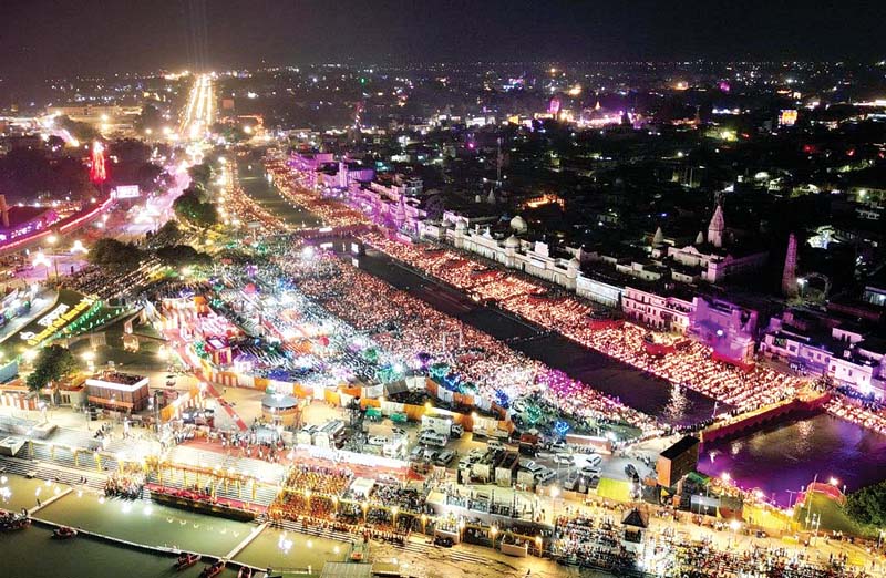 अयोध्या-रामनगरी अयोध्या में बुधवार को आठवीं बार भव्य दीपोत्सव का आयोजन किया गया, जिस दौरान राम की पैड़ी पर 28 लाख दीप प्रज्वलित कर विश्व रिकार्ड बनाया गया। रामनगरी को पूरी तरह से सजाया गया था और खुद मुख्यमंत्री योगी आदित्यनाथ ने राम कथा पार्क पर भगवान के स्वरूपों का राज्याभिषेक किया। राम की पैड़ी पर ही सांस्कृतिक कार्यक्रम भी आयोजित किए गए। इनमें लेजर शो इमेज प्रोटेक्शन शो भी शामिल रहा। 1100 अर्चकों ने एक साथ मां सरयू की आरती उतारी और सरयू पुल से आतिशबाजी का विशेष शो भी लोगों ने देखा। इसके बाद पहली बार 500 ड्रोन के साथ विशेष शो और फ्लेम शो का भी भक्तों ने लुत्फ उठाया। दीपोत्सव-2024 को ऐतिहासिक बनाने के लिए 30 हजार वालंटियर्स के सहयोग से 28 लाख दीयों को प्रज्वलित किया गया। इससे पहले मुख्यमंत्री योगी ने सोशल मीडिया के माध्यम से लिखा कि दीपोत्सव ऐतिहासिक है।