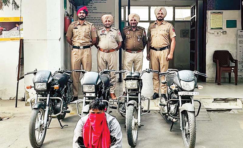 जालंधर कमिश्नरेट पुलिस ने पुलिस कमिश्नर स्वपन शर्मा के नेतृत्व में एक व्यक्ति को गिरफ्तार कर उसके पास से चोरी की चार मोटरसाइकिल बरामद करके एक बड़ी सफलता हासिल की है। वहीं, इस संबंध में जानकारी देते हुए पुलिस कमिश्नर स्वपन शर्मा ने बताया कि कमिश्नरेट पुलिस को सूचना मिली थी कि एक गिरोह शहर में मोटरसाइकिल चोरी करने का काम कर रहा है। उन्होंने बताया कि सूचना के आधार पर कमिश्नरेट पुलिस की टीम ने हरदीप सिंह उर्फ दीपा पुत्र रेशम लाल निवासी गांव मुढ़ा थाना नकोदर जालंधर को गिरफ्तार कर उसके पास से एक चोरी की हीरो स्प्लेंडर मोटरसाइकिल बरामद की है।