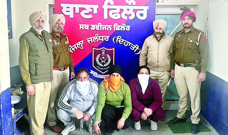 जालंधर-जालंधर ग्रामीण पुलिस ने संगठित अपराध के खिलाफ बड़ी सफलता हासिल करते हुए तीन व्यक्तियों को गिरफ्तार करके भूमि धोखाधड़ी रैकेट का भंडाफोड़ किया है, जो जाली दस्तावेजों का उपयोग करके लगभग दस करोड़ मूल्य की दस एकड़ प्रमुख भूमि को धोखाधड़ी से पंजीकृत करने का प्रयास कर रहे थे। इस मामले में खुलासा करते हुए जालंधर ग्रामीण पुलिस के एसएसपी हरकमलप्रीत सिंह खख ने कहा कि विशिष्ट खुफिया सूचनाओं के बाद फिल्लौर पुलिस ने एक सावधानीपूर्वक योजनाबद्ध अभियान चलायाए जिसके परिणामस्वरूप ये महत्वपूर्ण गिरफ्तारियां हुईं। एसएसपी खख ने बताया कि विश्वसनीय सूचना के आधार पर हमारी टीम ने तीन व्यक्तियों को पकड़ा, जिन्होंने बहादुरक बा गांव भाटिया में दस एकड़ जमीन का फर्जी तरीके से स्वामित्व हासिल करने की योजना बनाई थी।