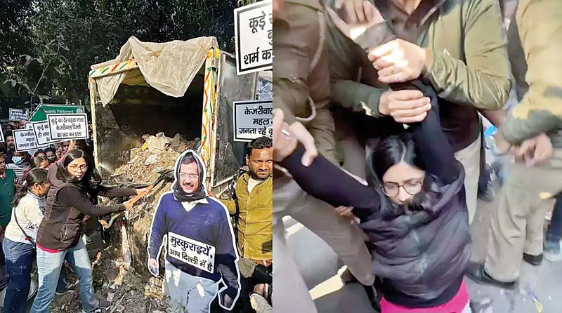 केजरीवाल के घर के बाहर स्वाति मालीवाल ने फेंका कूड़ा, दिल्ली पुलिस ने हिरासत में लिया