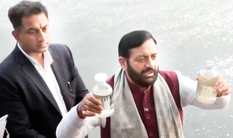 उनके हाथ में हरियाणा के यमुना नदी का पानी भी था। सैनी ने कहा कि हम स्वच्छ पानी दे रहे हैं और ये दिल्ली का पानी है, दिल्ली के लोगों को ये गंदा पानी पीने के लिए मजबूर किया जा रहा है। आज केजरीवाल ने सामूहिक नरसंहार की बात की है, इसके लिए केजरीवाल जिम्मेदार है और इसके लिए कोई और जिम्मेदार नहीं है। हरियाणा के मुख्यमंत्री ने कहा कि 10 साल बाद भी वह यमुना नदी की सफाई नहीं कर पाए हैं। आपको दिल्ली और हरियाणा के लोगों से माफी मांगनी चाहिए।