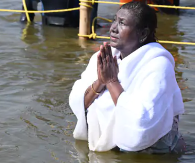 राष्ट्रपति द्रौपदी मुर्मू ने महाकुंभ में डुबकी लगाई