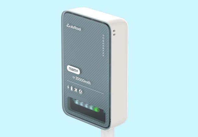 Stuffcool Roam+ एक कॉम्पेक्ट पावरबैंक है जो 20,000mAh बैटरी कैपिसिटी के साथ आता है। पोर्टेबल होने के चलते इसे साथ में लेकर ट्रेवल करना काफी आसान है। यह इसके फ्रंट साइड में एक ट्रांसपेरेंट केसिंग दी गई है। यह ग्लॉस फिनिश के साथ आता है। इसकी बॉडी के डाइमेंशन 10.8 x 6.9 x 2.93cm हैं। पावरबैंक का वजन 322 ग्राम है। इसके अन्य खास फीचर्स में एक LED इंडिकेटर भी आता है जो चार्जिंग स्टेटस के बारे में जानकारी दिखाता है। चार्जिंग के लिए इसमें USB Type-C PD पोर्ट दिया गया है। यह 20W फास्ट चार्जिंग को सपोर्ट करता है। इसके अलावा इसमें 22.5W USB Type-A पोर्ट भी दिया गया है। यह पोर्ट 22.5W फास्ट चार्जिंग को सपोर्ट करता है।
