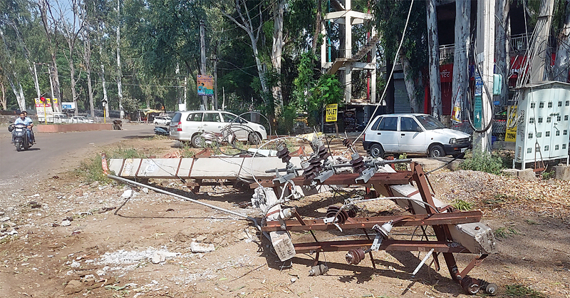 बिजली बहाली को जुटे कर्मचारी, तलवाड़ा में तूफान के कारण तारों पर गिरी थी पेड़ों की डालियां