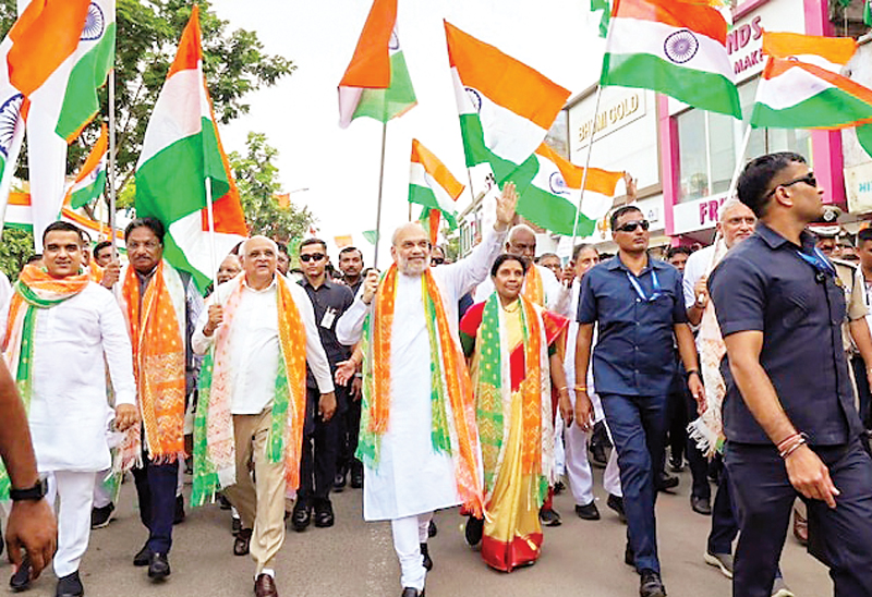 केंद्रीय गृह मंत्री अमित शाह ने रविवार को अहमदाबाद में अहमदाबाद नगर निगम की विभिन्न विकास परियोजनाओं के उद्घाटन और शिलान्यास किया। उन्होंने ऑपरेशन सिंदूर में भारतीय सैन्य बल की कार्रवाई की प्रशंसा की। साथ ही पाकिस्तान को करारा जवाब दिया। उन्होंने कहा कि आतंक और व्यापार एक साथ नहीं चल सकते। हमने पाकिस्तान को करारा जवाब दिया है। उसके एयरबेस तबाह कर दिए। इससे पहले केंद्रीय गृह मंत्री अमित शाह ने रविवार को सेनाओं के सम्मान में गुजरात के अहमदाबाद में तिरंगा यात्रा की अगवाई की। इस दौरान उमड़ी भीड़ के बीच अमित शाह राष्ट्र ध्वज थामे जुलूस के आगे चलते दिखे। ऑपरेशन सिंदूर के बाद देशभर में भाजपा की ओर से सेना के सम्मान में तिरंगा यात्रा निकाली जा रही है।
