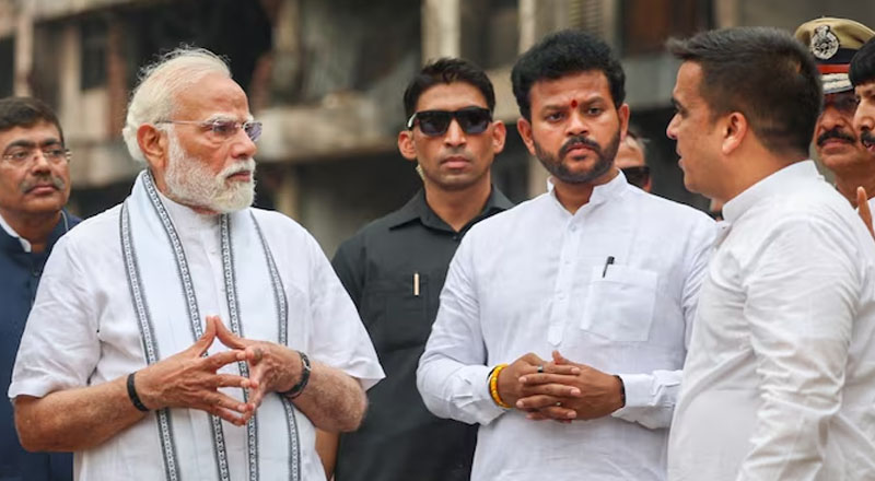 .प्रधानमंत्री के साथ केंद्रीय नागरिक उड्डयन मंत्री राम मोहन नायडू, गुजरात के मुख्यमंत्री भूपेंद्र पटेल और कई शीर्ष अधिकारी घटनास्थल पर मौजूद रहे और घटनास्थल का बारीकी से जायजा लिया। प्रधानमंत्री ने कहा कि आज अहमदाबाद में दुर्घटनास्थल का दौरा किया। तबाही का मंजर दुखद है। अधिकारियों और टीमों से मुलाकात की जो घटना के बाद अथक परिश्रम कर रहे हैं। हमारी संवेदनाएं उन लोगों के साथ हैं, जिन्होंने इस अकल्पनीय त्रासदी में अपने प्रियजनों को खो दिया है। गौरतलब है कि गुरुवार दोपहर में एयर इंडिया का विमान 786 उड़ान भरने के दो मिनट बाद ही दुर्घटनाग्रस्त हो गया था। विमान में चालक दल के 12 सदस्य सहित कुल 242 यात्री सवार थे। इस हादसे में गुजरात के पूर्व मुख्यमंत्री विजय रुपाणी का भी निधन हो गया। विमान में सवार यात्रियों में 169 भारतीय नागरिक, 53 ब्रिटिश, सात पुर्तगाली और एक कनाडाई नागरिक था। इस हादसे में भारतीय मूल के ब्रिटिश नागरिक रमेश विश्वास ही जीवित बचे है। उनका अस्पताल में इलाज चल रहा है।
