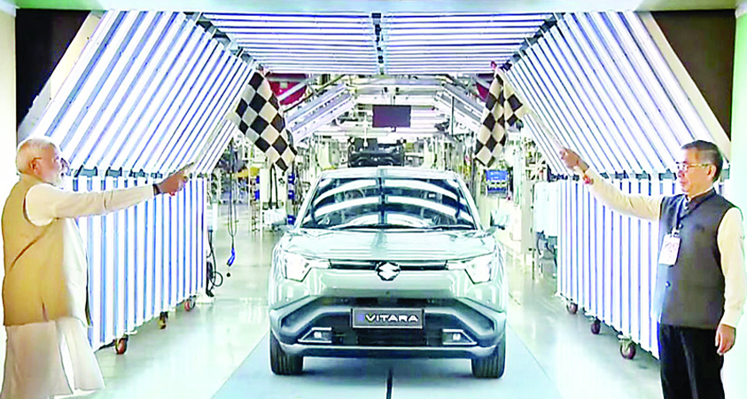 प्रधानमंत्री नरेंद्र मोदी ने मंगलवार को कहा कि भारत में निर्मित इलेक्ट्रिक वाहन 100 देशों में निर्यात किए जाएंगे, साथ ही देश में हाइब्रिड बैटरी इलेक्ट्रोड उत्पादन भी शुरू होगा। श्री मोदी ने गुजरात में अहमदाबाद जिला के हांसलपुर में मारुति सुजुकी की पहली ‘ई-विटारा’ इलेक्ट्रिक कार का अनावरण, ग्रीन मोबिलिटी पहल का उद्घाटन किया और कहा कि गणेशोत्सव की उत्सव भावना के बीच मेक इन इंडिया यात्रा में एक नया अध्याय जुड़ रहा है। अब दुनिया के दर्जनों देशों में चलने वाली इलेक्ट्रिक गाडिय़ों पर भी मेड इन इंडिया लिखा होगा।