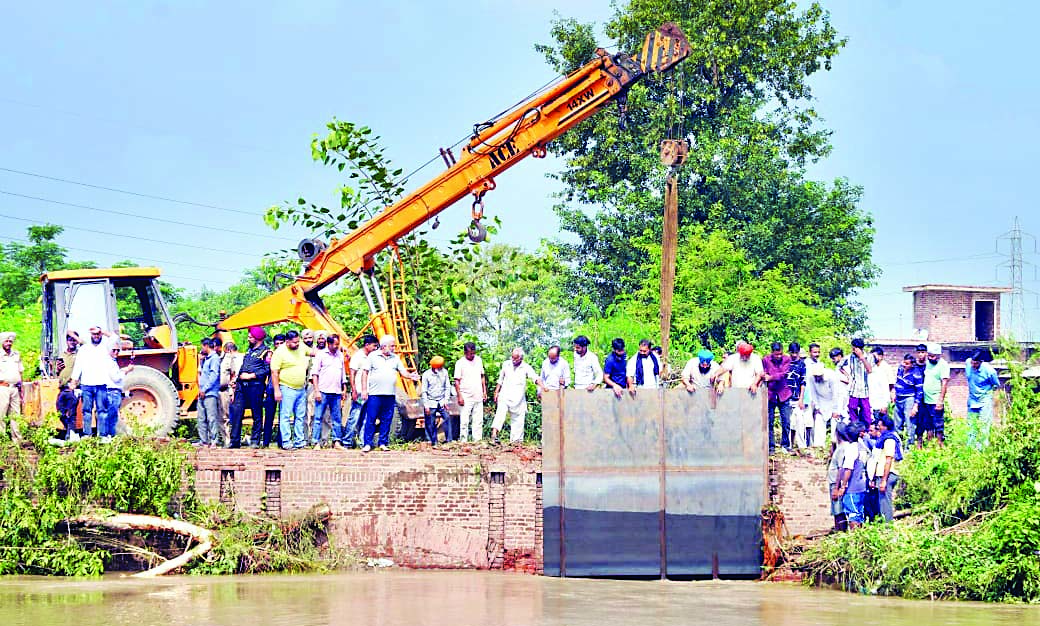 नहर पर बैरिकेड लगा कर रोका पानी, माधोपुर में गेट टूटने से रिहायशी इलाकों में जा घुसा था पानी