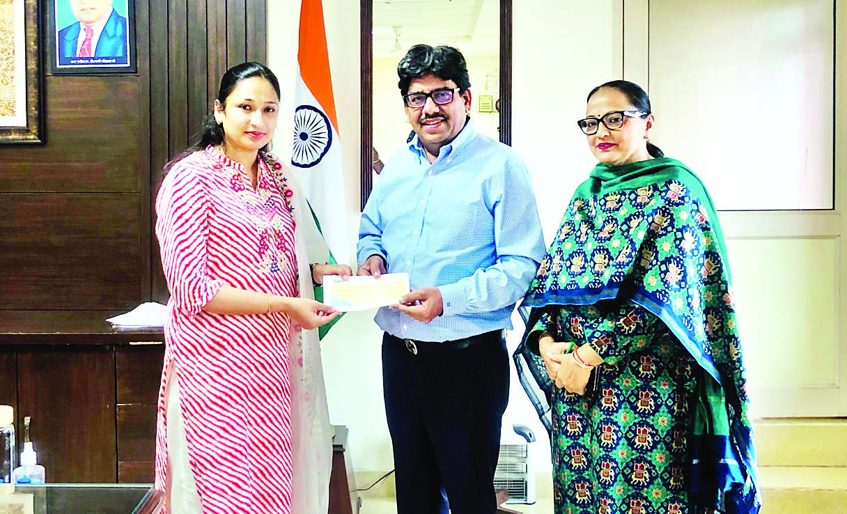 बाढ़ प्रभावितों को दस लाख की मदद, मानव मंगल स्कूल प्रबंधन ने उपायुक्त कोमल मित्तल को सौंपा चेक