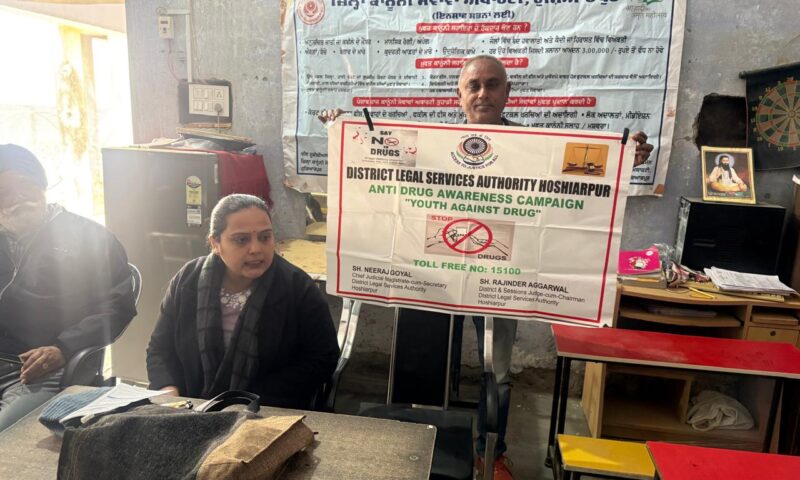 जिला कानूनी सेवाएं अथॉरिटी होशियारपुर द्वारा पंजाब राज्य कानूनी सेवाएं अथॉरिटी एस.ए.एस. नगर के दिशा-निर्देशों तथा जिला एवं सत्र न्यायाधीश राजिंदर अग्रवाल के आदेशों की पालना करते हुए युवाओं को नशों एवं अन्य कुरीतियों से बचाकर स्वस्थ समाज की सृजना के उद्देश्य से होशियारपुर जिले में व्यापक जागरूकता अभियान चलाया जा रहा है। इसके तहत जिले के गांव-गांव पहुंचकर जागरूकता कार्यक्रम आयोजित किए जा रहे हैं।
