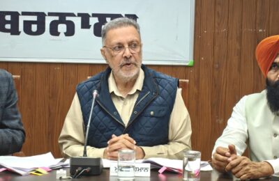 पंजाब के स्वास्थ्य मंत्री डॉ. बलबीर सिंह ने ज़िला बरनाला का औचक दौरा कर मुख्यमंत्री स्वास्थ्य योजना के तहत चल रही पंजीकरण प्रक्रिया का जायज़ा लिया। उन्होंने बताया कि ज़िले में रोज़ाना 21 स्थानों पर शिविर लगाकर पंजीकरण किया जा रहा है, जिसे और तेज़ किया जाएगा। उन्होंने ज़िला प्रशासन को निर्देश दिए कि कोई भी परिवार इस योजना के लाभ से वंचित न रहे। इस अवसर पर विधायक महल कलां एवं विधानसभा की विशेषाधिकार समिति के चेयरमैन कुलवंत सिंह पंडोरी तथा विधायक भदौड़ लाभ सिंह उग्गोके भी मौजूद रहे।