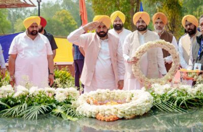 ਸ਼ਹੀਦ-ਏ-ਆਜ਼ਮ Bhagat Singh, Shivaram Rajguru ਅਤੇ Sukhdev Thapar ਦੇ ਸ਼ਹੀਦੀ ਦਿਹਾੜੇ ਮੌਕੇ Bhagwant Mann ਨੇ ਹੁਸੈਨੀਵਾਲਾ ਵਿਖੇ ਇਤਿਹਾਸਕ ਕੌਮੀ ਸ਼ਹੀਦ ਸਮਾਰਕ ’ਤੇ ਸ਼ਰਧਾਂਜਲੀ ਭੇਟ ਕਰਦੇ ਹੋਏ ਸ਼ਹੀਦਾਂ ਦੇ ਸੁਪਨਿਆਂ ਦਾ ‘ਰੰਗਲਾ ਪੰਜਾਬ’ ਬਣਾਉਣ ਲਈ ਆਪਣੀ ਸਰਕਾਰ ਦੀ ਵਚਨਬੱਧਤਾ ਦੁਹਰਾਈ।