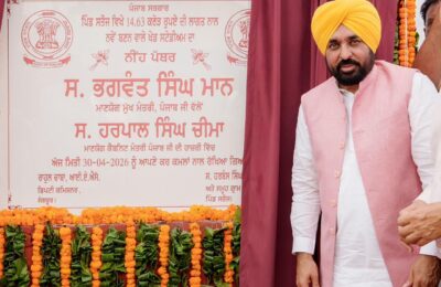 संगरूर, 30 अप्रैल: पंजाब के मुख्यमंत्री भगवंत सिंह मान ने आज गांव सतौज में 14.63 करोड़ रुपये की लागत से बनने वाले आधुनिक खेल स्टेडियम का शिलान्यास किया, जो खेल, स्वास्थ्य और अनुशासन के माध्यम से युवाओं के भविष्य को संवारने की दिशा में एक महत्वपूर्ण कदम है।